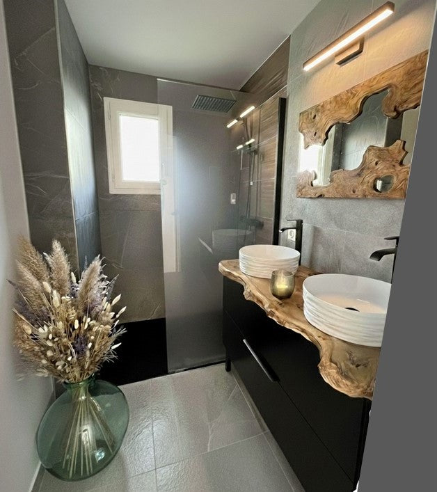 - Tables sur mesure, plateaux, lampes en bois…